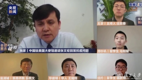 5月29日,教育部为在美留学人员开通在线健康咨询和诊疗服务平台。启动仪式上,张文宏为留美学生在线健康咨询,讲解了“新冠疫情全球传播态势预判与留美学生防疫建议”。