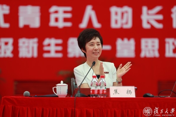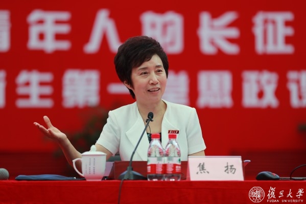 “学校要搭建舞台,造就学生、为国育才;学生要用好舞台,成就自己、回报国家。”焦扬分享了自己的思考,她叮嘱同学们,步入复旦,是人生的高光时刻,但不能让进入复旦成为自己的人生巅峰、满足于考入复旦这个“小目标”。“希望同学们在复旦提供的沃土上学会选择、抓紧当下,珍惜时光、努力成长,为国家的新长征蓄能,也为自己的人生长征奠基。”
