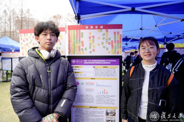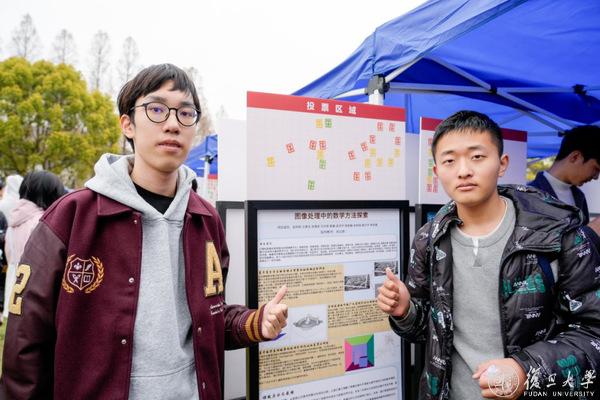 在海报摊位之外,场地外围设有“复芏计划”特色项目介绍区,展示着学校对本科生科研的持续支持。第一届“悟”阶段的高票课题也在现场展出,成为学弟学妹们的参考范本。还有“数院大神”“益创星球”等学生社团的摊位,吸引着往来同学。