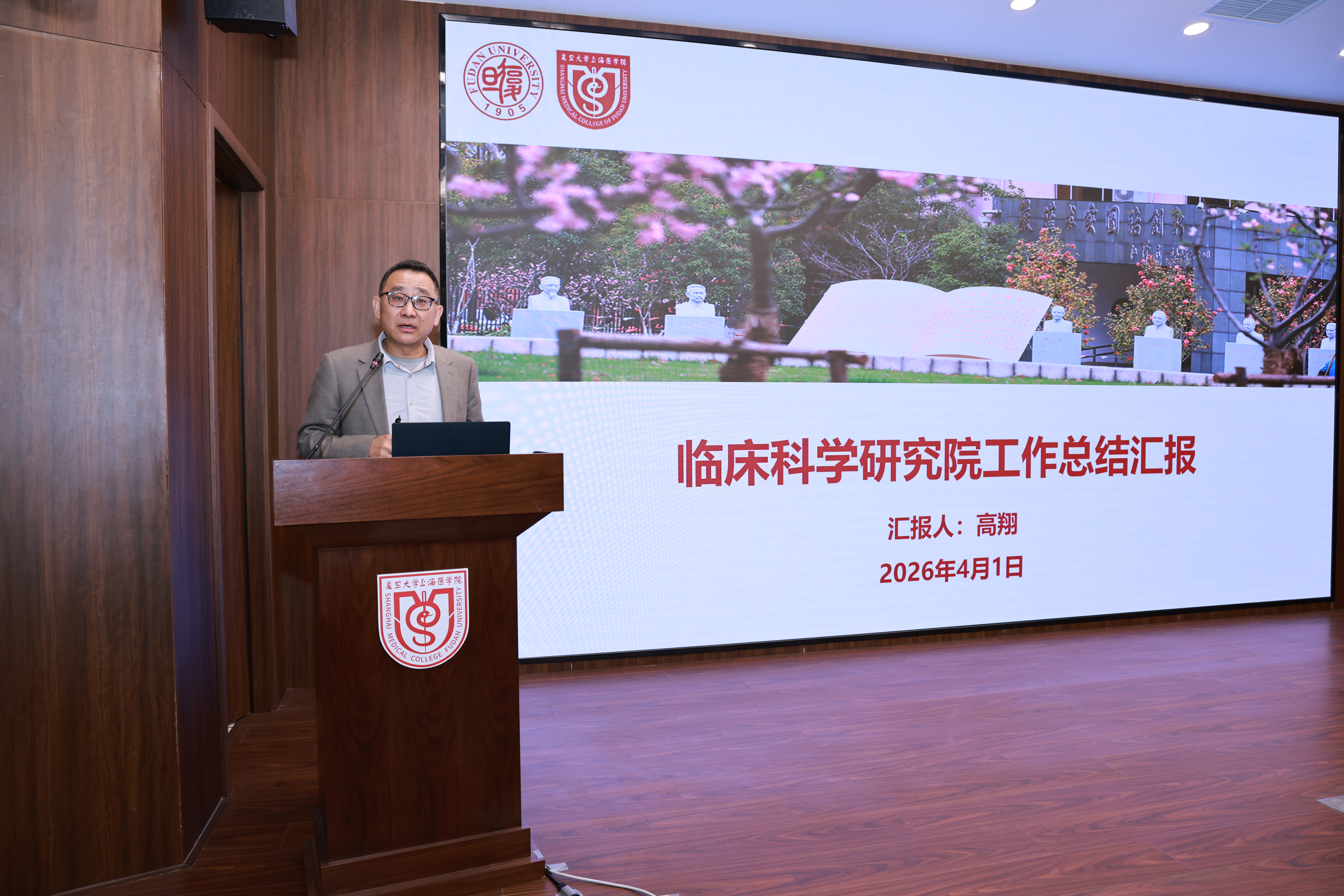 高翔汇报了临科院自2025年3月启动筹建以来的各项工作进展。在资源整合方面,临科院系统走访9家附属医院及申康临床转化研究院,全面梳理临床科研现状与需求,推动临床数据与社区健康数据融通,推进社区队列建设,为临床研究开展筑牢数据基础;在人才培养方面,主动对接世界顶尖高校,积极推进学历教育与临床研究培训项目筹备工作;在产学研医融合方面,积极联动各级政府,推进临科院基地筹建工作,构建临床研究合作网络;机制创新方面,牵头组织临床研究管理类软课题项目,面向附属医院立项12项,为临床研究规范化开展提供支撑。