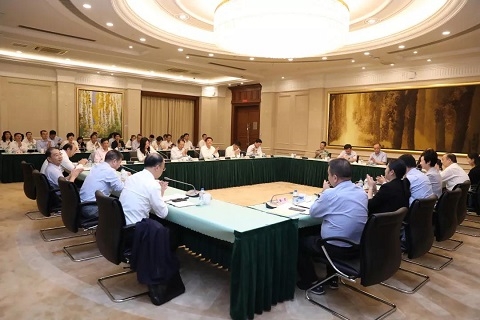 会议由复旦大学党委书记焦扬主持,复旦大学党委副书记、校长许宁生等党政领导、复旦大学上海医学院党政领导、全校中层领导干部、教职工党支部书记,杨浦区委书记李跃旗,区委副书记、区长谢坚钢等杨浦区委、区政府领导参加了学习。