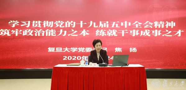 12月24日下午,党委党校2020年新任职处级干部培训班暨“贯彻新发展理念,提升办学治校能力”专题培训结业式在光华楼东辅楼102报告厅举行。复旦党委书记、党校校长焦扬以《学习贯彻党的十九届五中全会精神 筑牢政治能力之本 练就干事成事之才》为题,为培训班全体成员上专题党课,围绕当前形势怎么看、学校事业怎么干两个方面向学员提出期望和要求。